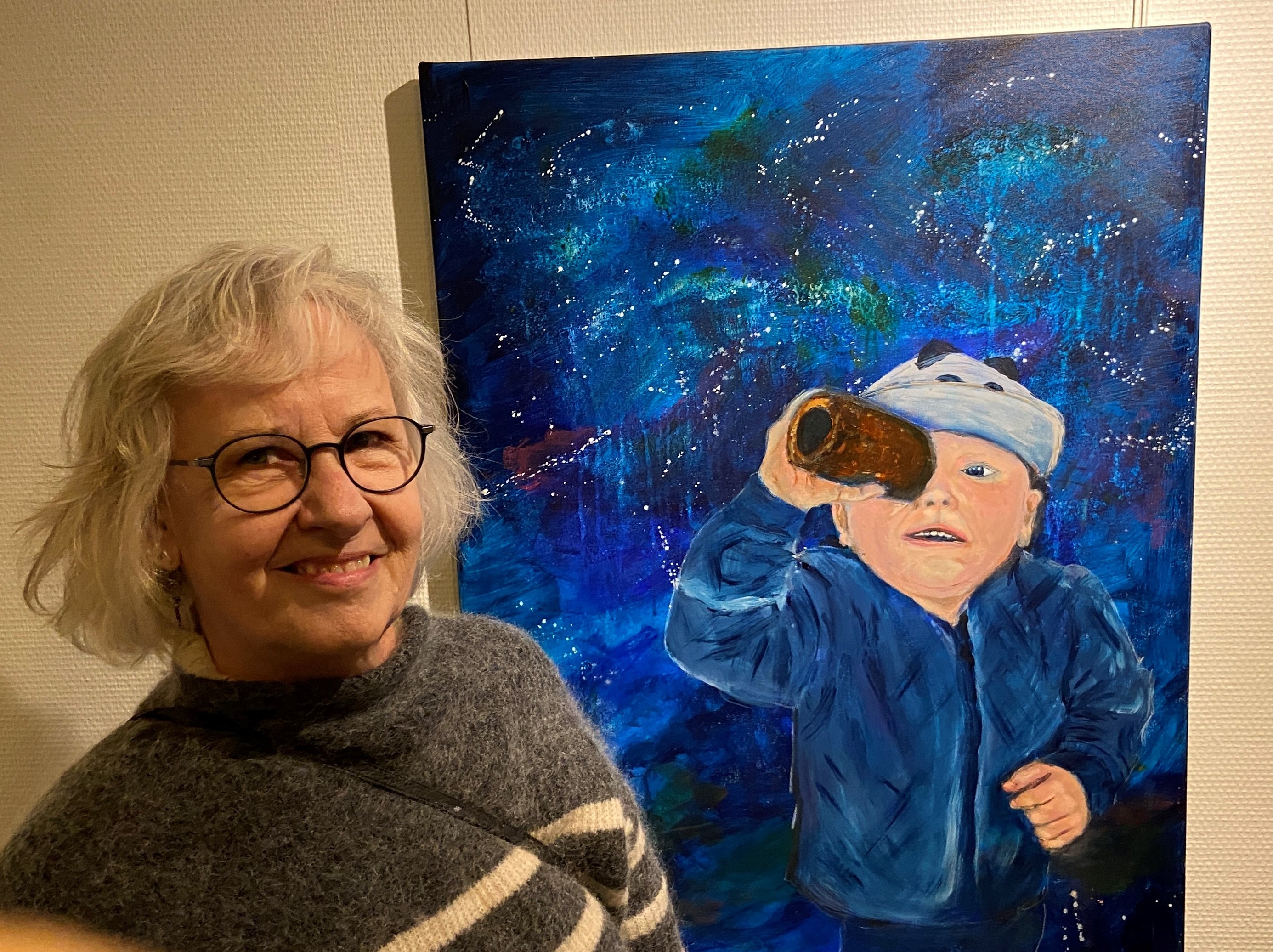 Jonna Vilstrup fortæller videre: At portrættere mennesker og male stemninger fra naturen oplever jeg som meningsfuldt, og jeg kombinerer ofte de to. Egne fotografier danner tit udgangspunkt for motiver og ideer. På udstillingen kan man se eksempler på netop børnebørns fotografier – med lidt ekstra kant.